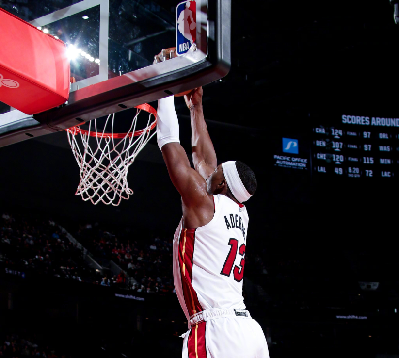 重新回到赛场之后,爵士开始在内线夹击阿德巴约,直接导致后者的命中率显著下滑,不过四节战罢,阿德巴约还是砍下了26分、15个篮板、2次助攻和1个封盖的两双数据,让热火始终保持着篮板球上的巨大优势。