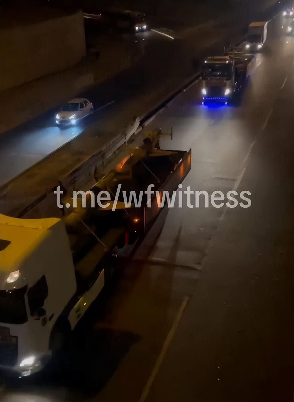 1月21日深夜,伊朗革命卫队(IRGC)下属的媒体渠道发布了一系列图片和简讯。画面中,多辆卡车在夜色掩护下穿过伊朗城市,车上装载的赫然是战斗无人机和导弹。渠道配文称,“无人机和导弹正在全国多个城市间转移”。